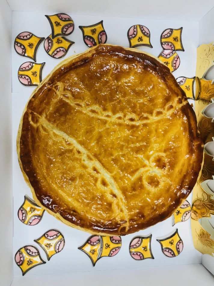 Un cocktail détonnant entre une tradition qui remonte à l’Antiquité romaine et une culture urbaine bien plus récente : le graffiti. Une galette en format individuel ou à partager, crème d’amande et praline rose dans laquelle vous trouverez peut-être une fève réalisée par l’entreprise Nex, une des dernières maisons françaises qui les réalise traditionnellement. Celle-ci est dessinée par Qlote (numérotée et limitée à 100 exemplaires).