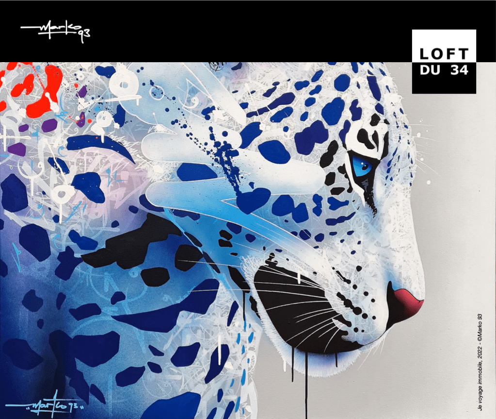 Casquette vissée sur la tête, mains recouvertes d’acrylique (c’est son cambouis à lui…) et sourire indéfectiblement accroché à ses lèvres, celui que l’on surnomme DarkVapor entend encore une fois surprendre le public avec des créations originales. » Comportement Inhabituel « De la bestialité inspirée de ses grands fauves à l’irrévérence malicieuse de ses gorilles des montagnes, c’est un bestiaire fantaisiste et hypnotique qui investira le Loft du 34 du 17 juin au 10 juillet pour enthousiasmer les petits et fasciner les grands.Précurseur, Marko 93 est un artiste au parcours richissime, du « calligraffisme » (un style abstrait qui mêle calligraphie et graffiti), au light painting, en passant par le body-painting autant de techniques créatives pour créer l’émotion et interpeller. Car l’art doit s’adresser à tous et sa finalité doit être l’échange.