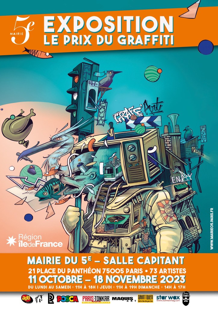 Nous sommes fiers de vous annoncer le lancement de l’exposition tant attendue de la 5e édition du Prix du Graffiti et du Street Art à la Mairie du 5e place du Panthéon. 73 artistes Graffiti & Street Art seront présents au sein de la Salle Capitant du 11 octobre au 18 novembre 2023. Les trophées sont réalisés cette année par Richard Orlinski qui sera présent lors de l’exposition, des sculptures monumentales de l’artiste trôneront à l’entrée de l’évènement. On vous donne rendez-vous le 11 octobre 2023 pour un vernissage inoubliable en présence des artistes.